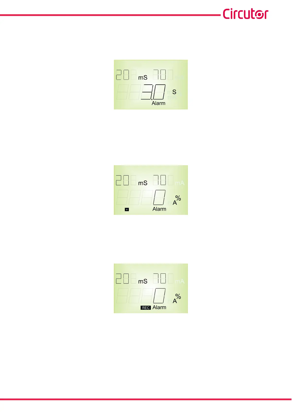 In the prealarm menu the REC function is shown as disabled or enabled. REC appears on the display