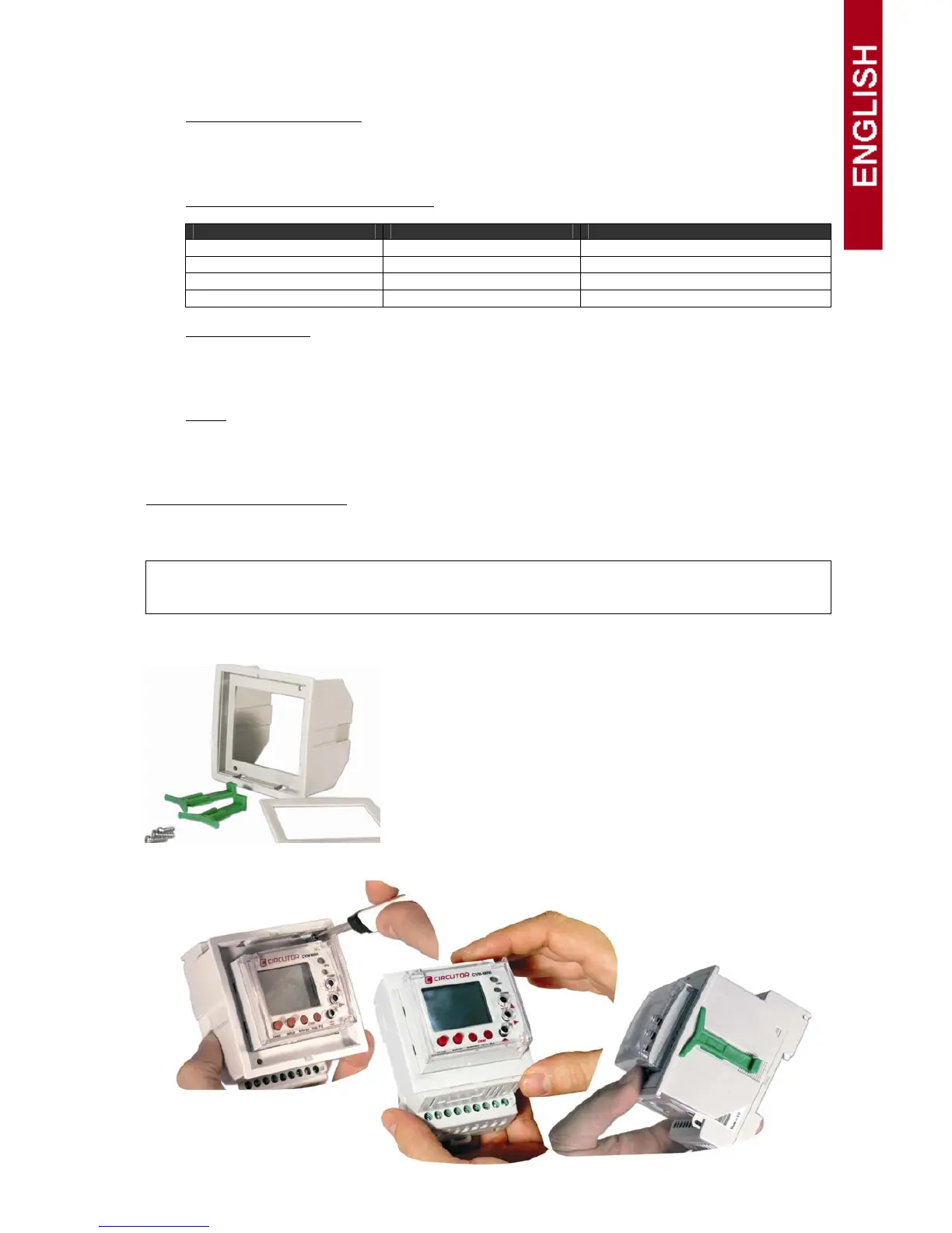 A 72x72 mm front adapter accessory is used to install the equipment on a panel. All connections must remain inside