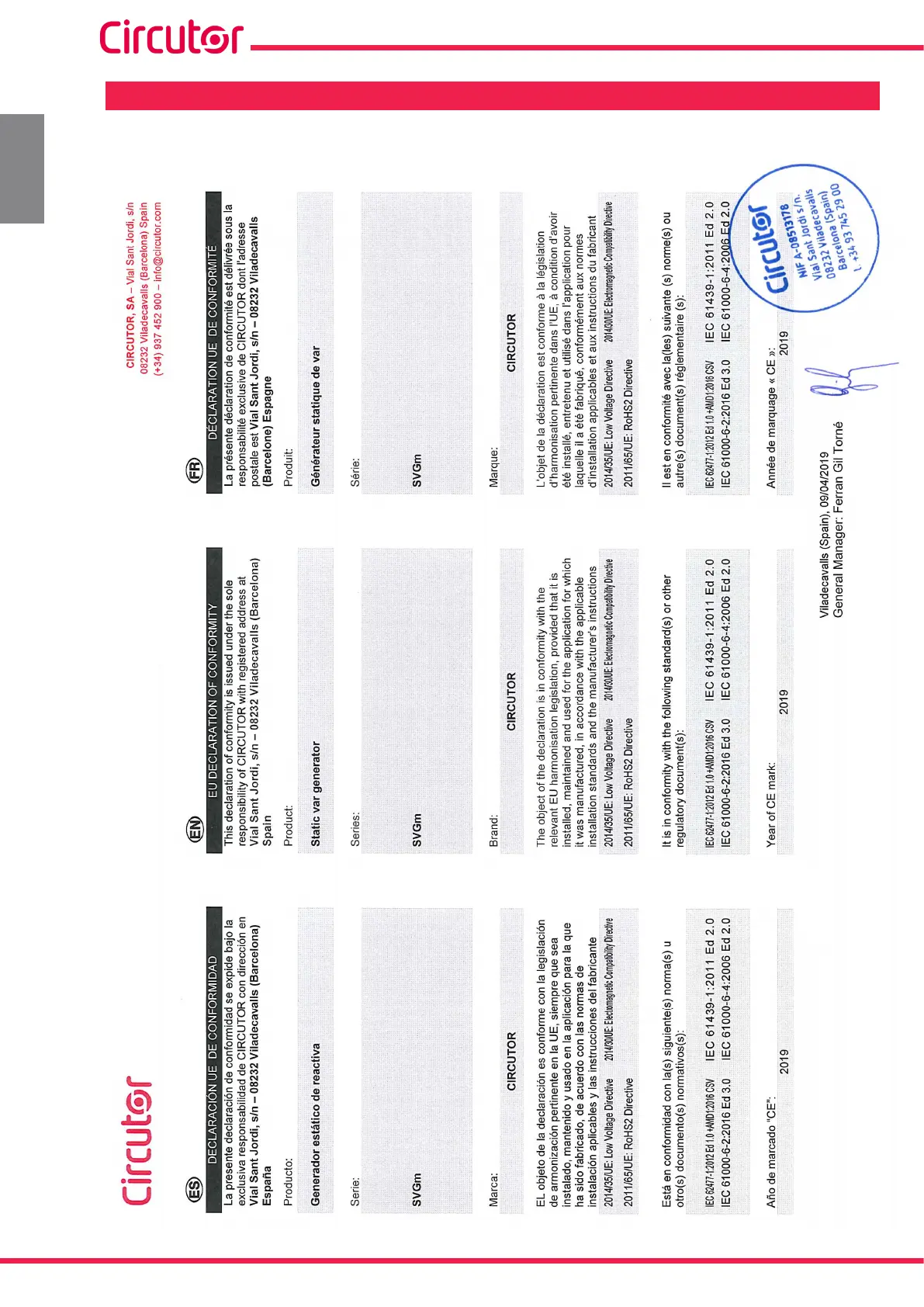 Circutor SVGm-4WF-020M-400 - 14 Declaración Ue de Conformidad