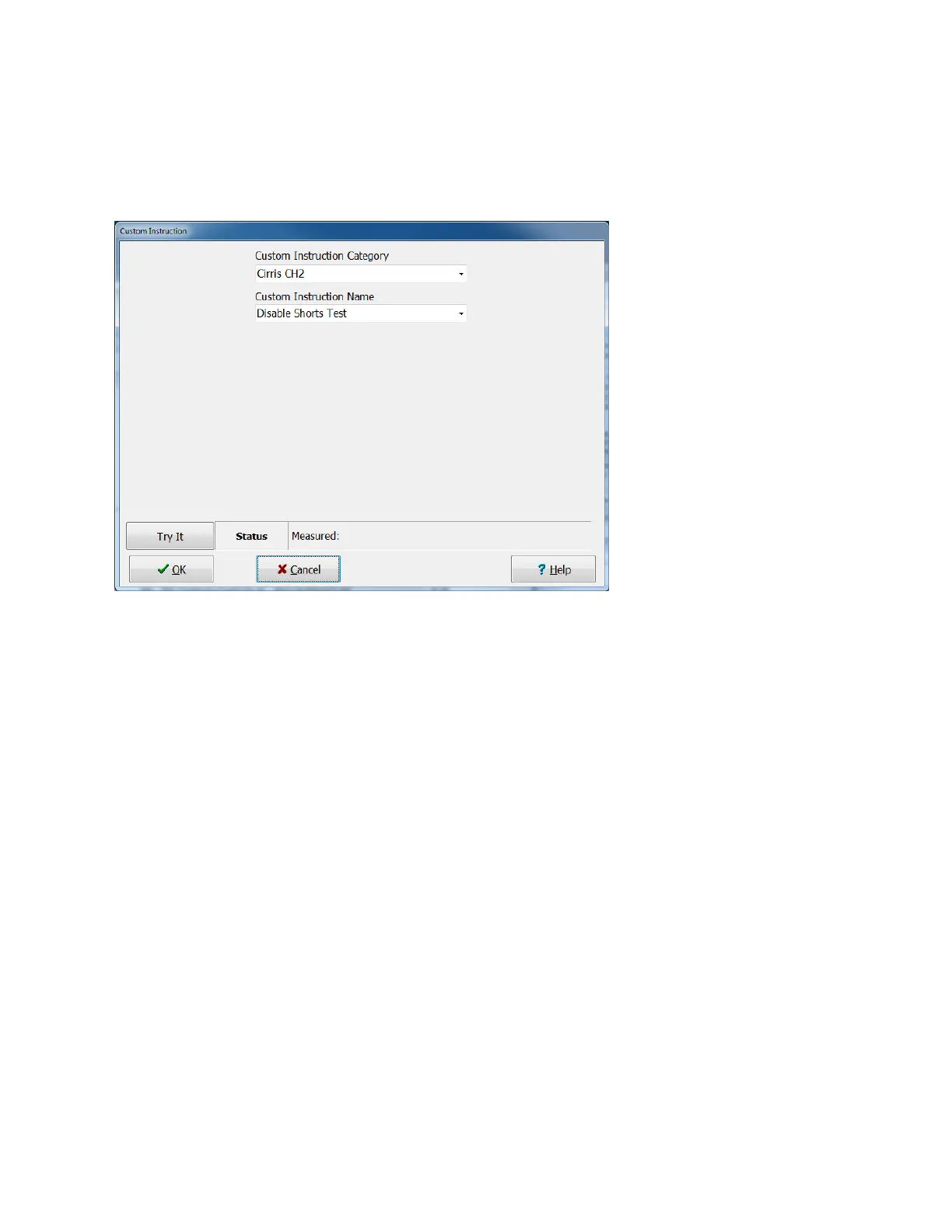 This custom instruction can be placed anywhere in the test instruction list to turn off the automatic shorts