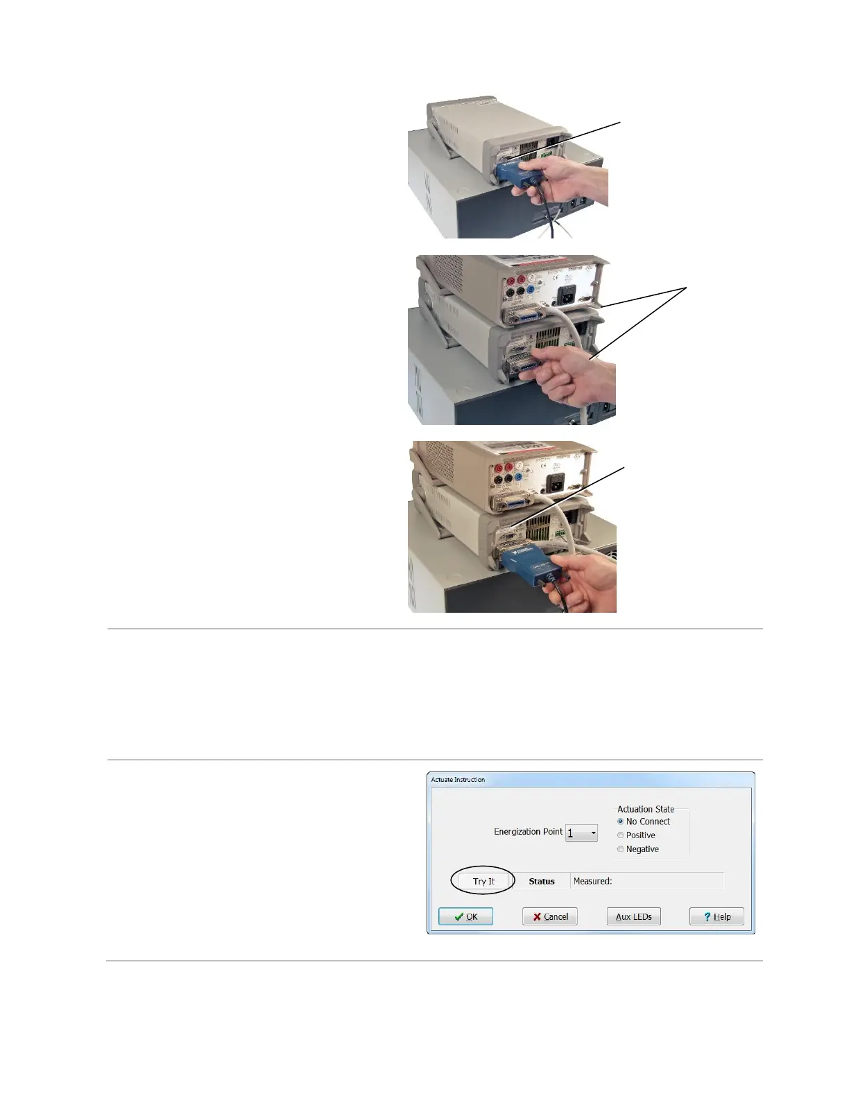 Energization points are selected in a test program using the “Actuate” instruction in the Easy-