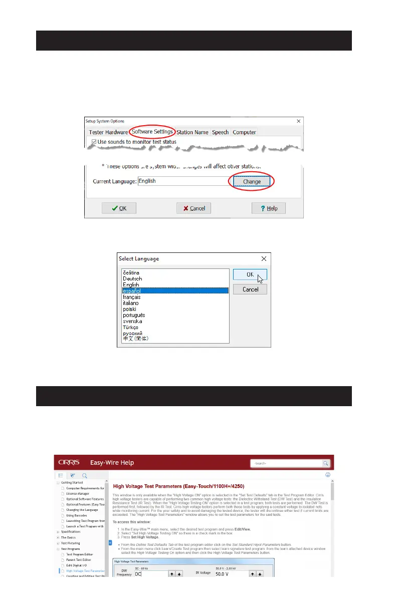 The language used in the Easy-Wire interface can be changed to one of the