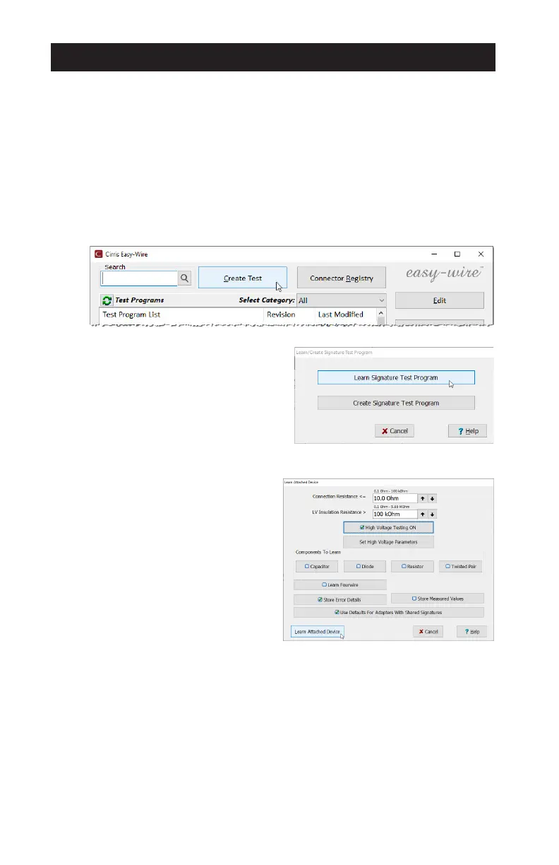 To create a test program using the Learn feature: