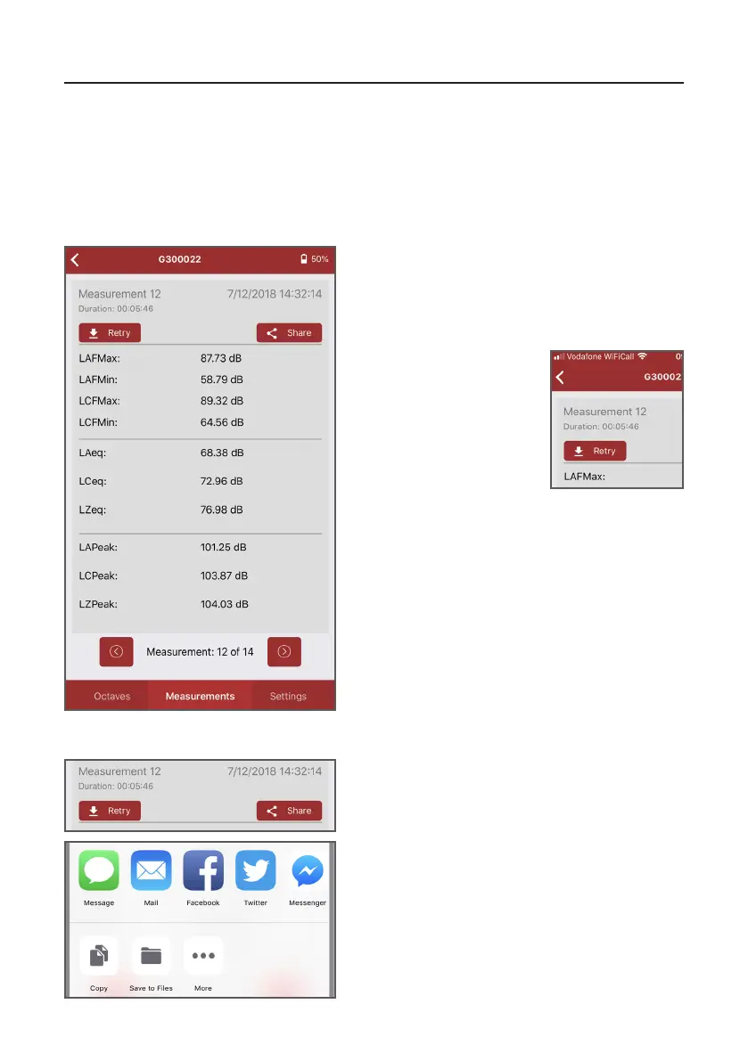 The ‘Measurements’ screen allows you to review previous measurement data for the