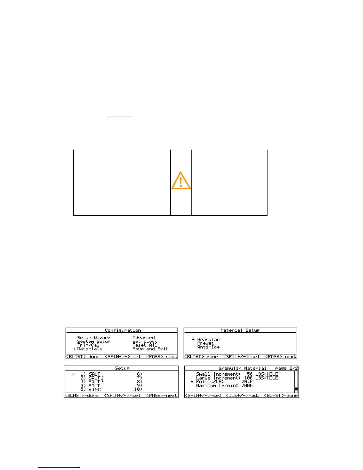 Configure up to (10) Granular, (10) Pre-Wet and (10) Anti-Ice material names to establish