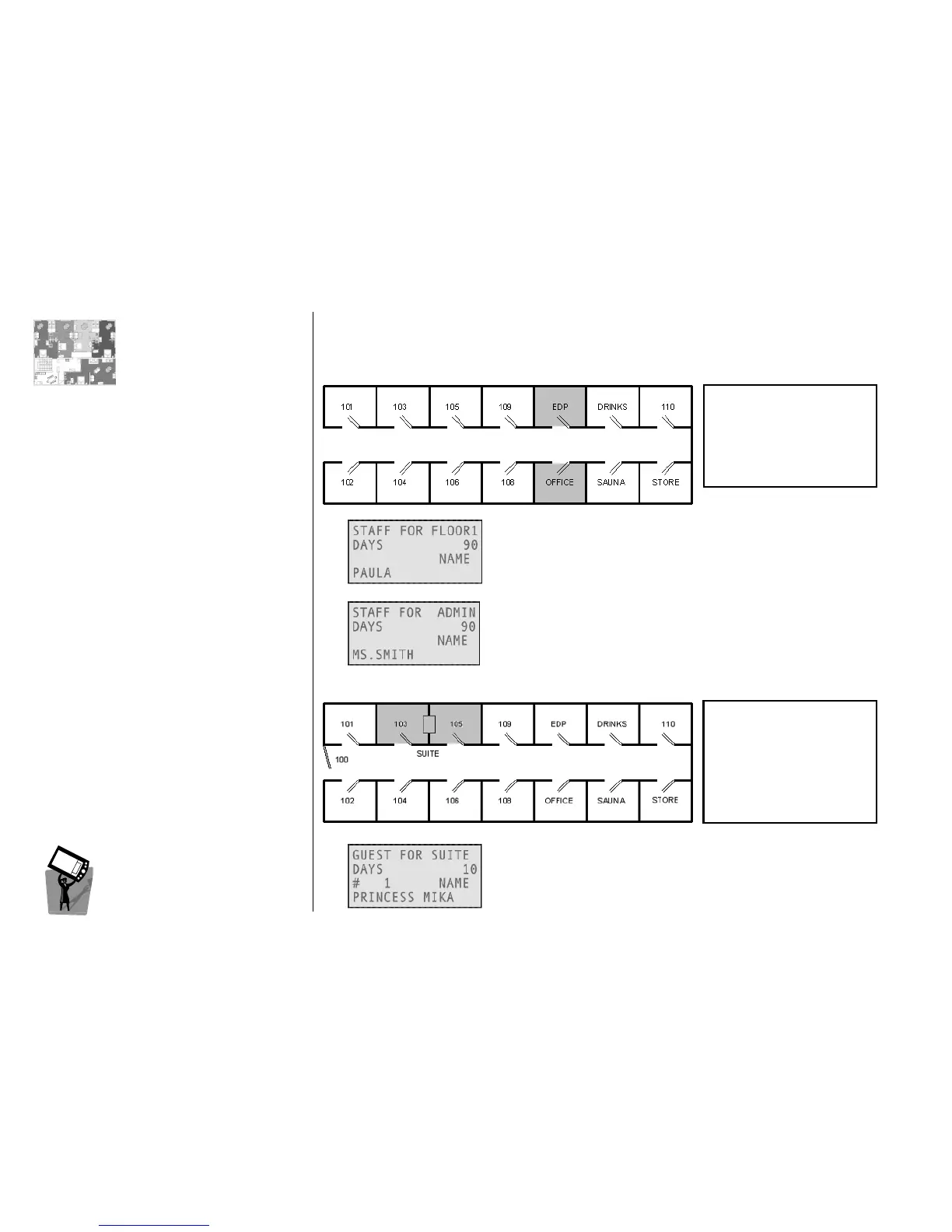 With this card, a guest will open the SUITE zone (rooms 103 and 105);