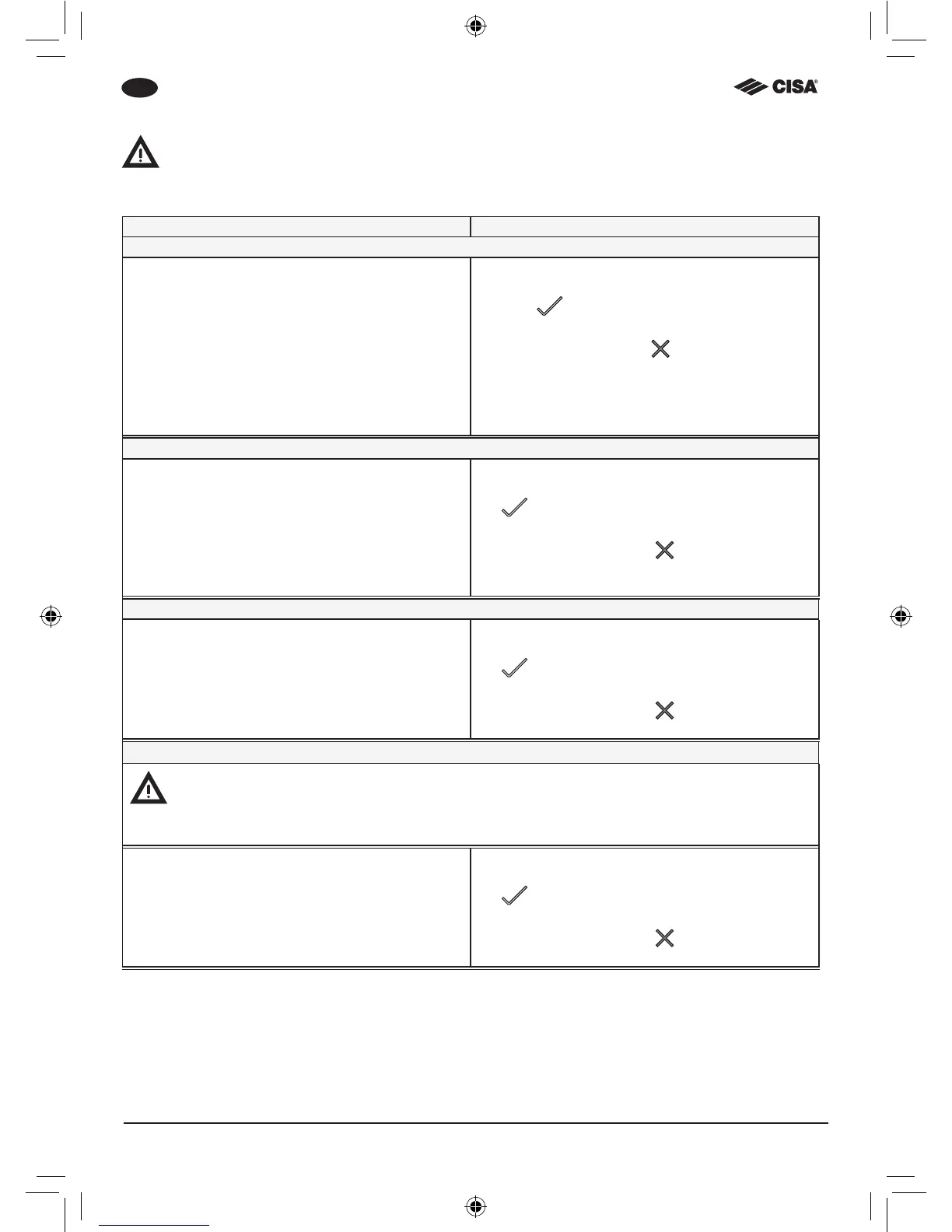 Tutte le procedure devono essere eseguite con anta porta aperta.