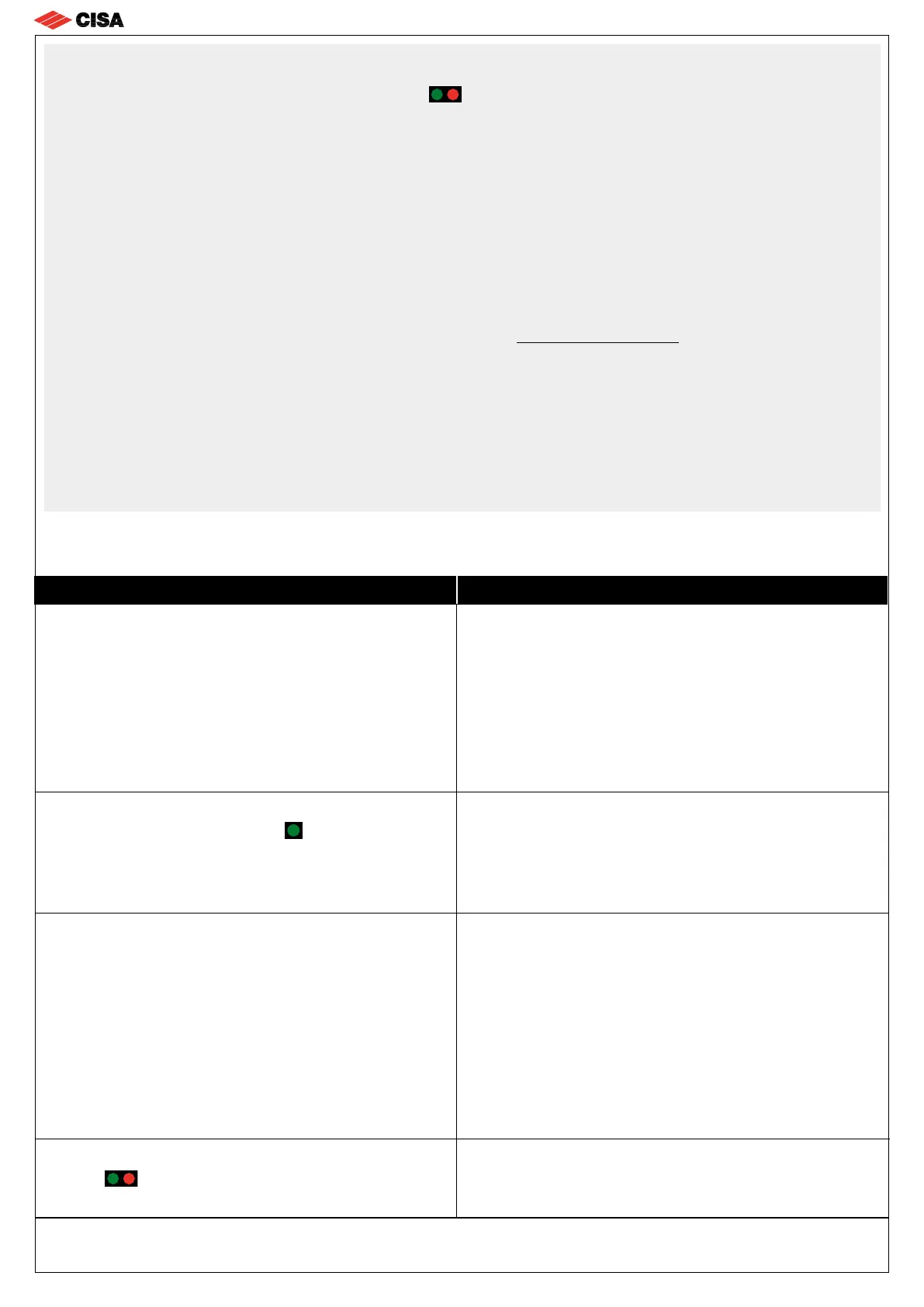 ninguna prestación o característica técnica que no esté indicada en estas instrucciones. Por particulares exigencias de seguridad, se invita al usuario a dirigirse al revendedor o instalador de estos productos, o directamente a CISA, quienes podrán