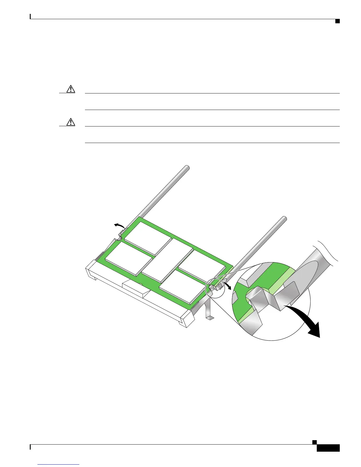 Caution On 4-port OC-3c/STM-1 ISE and 4-port OC-12c/STM-4c ISE line cards, you must restrain SODIMM0