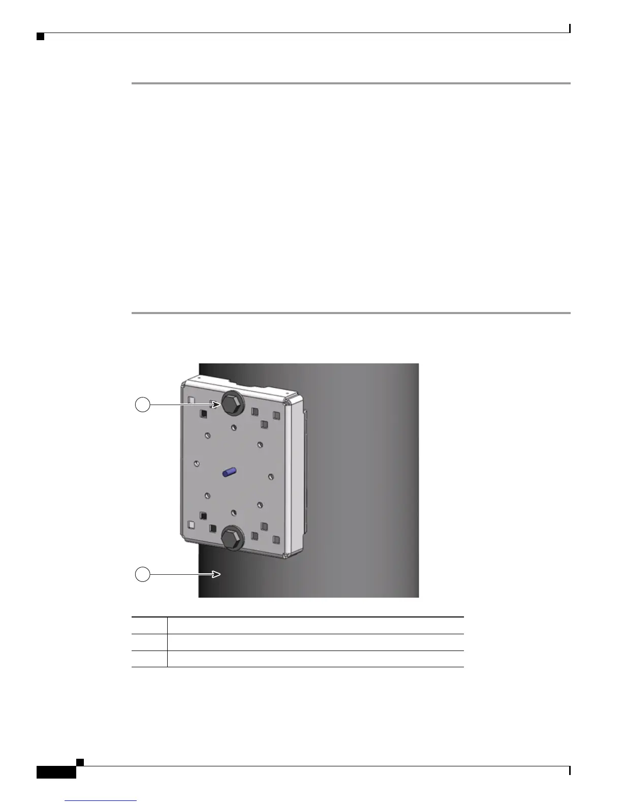 Step 4 Position the mounting plate over the drilled holes. Align the clearance holes on the mounting plate with
