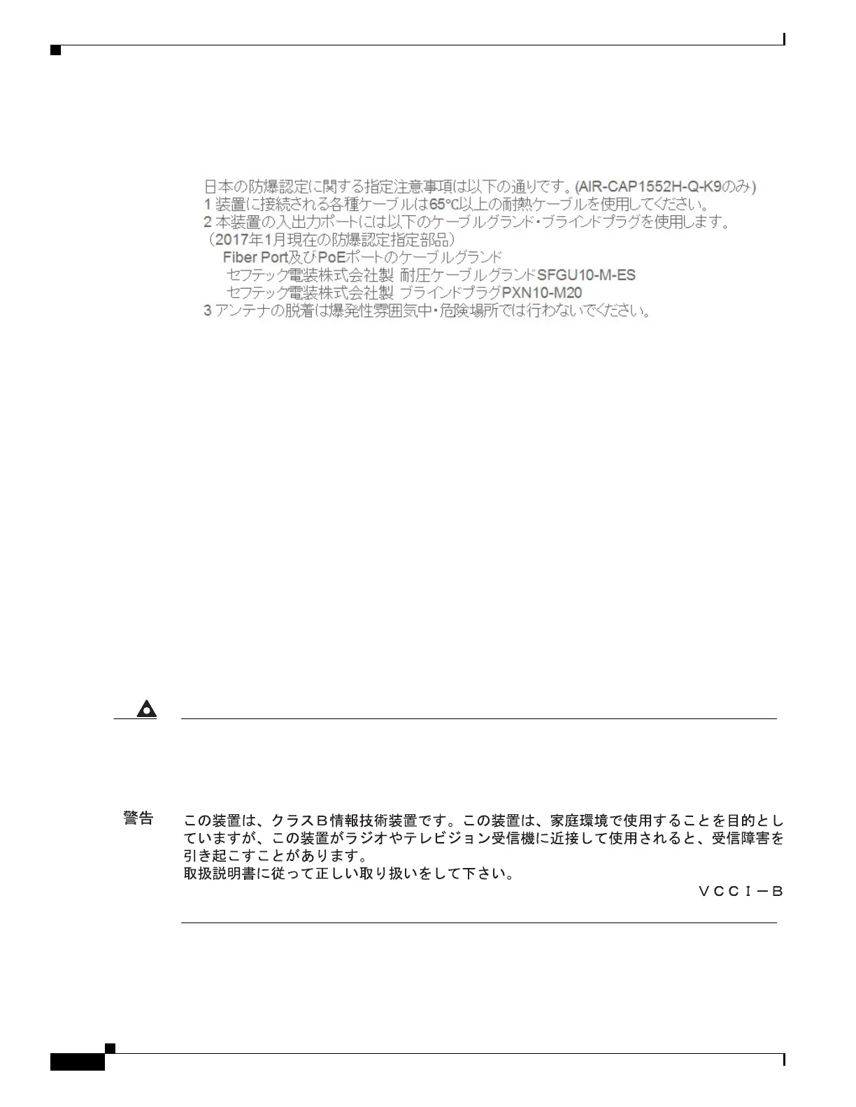 Specific notes on Japan explosion-proof certification are as follows. AIR-CAP1552H-Q-K9 (POE input