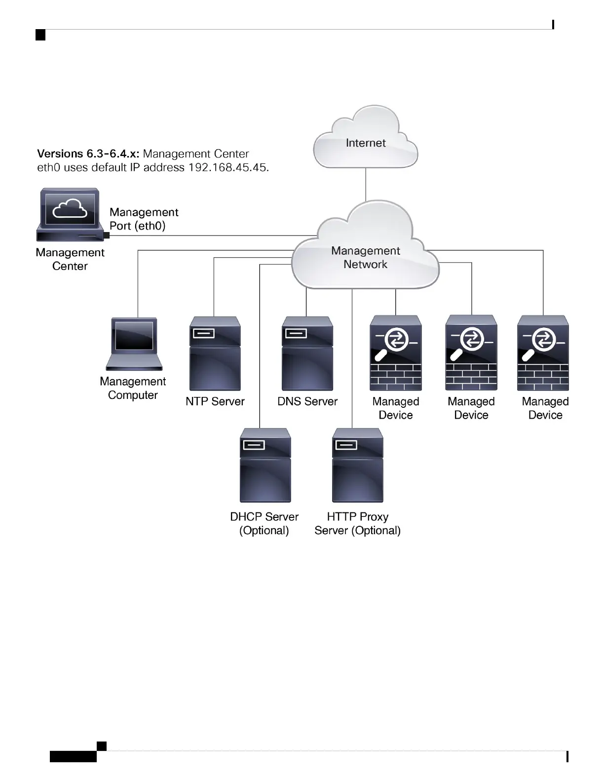 provide internet access to the management center directly or through a firewall device.