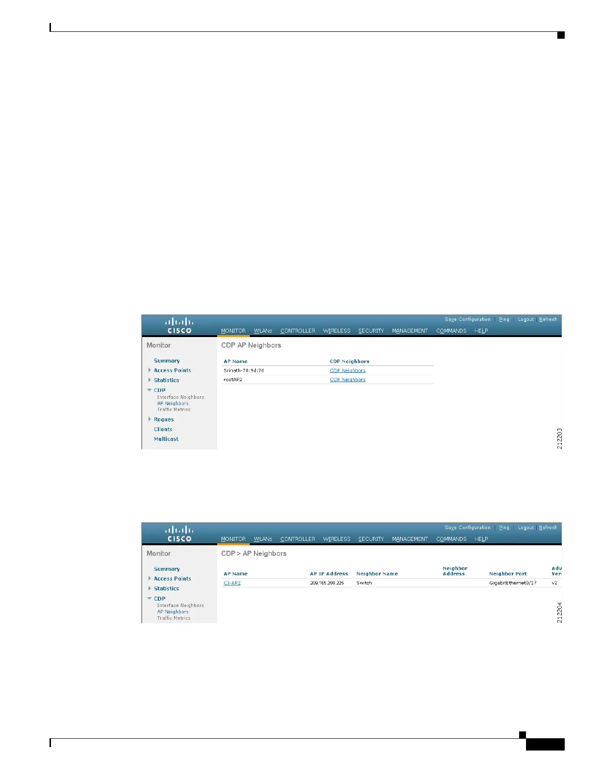 access point. The CDP > AP Neighbors page appears (see Figure 4-34).