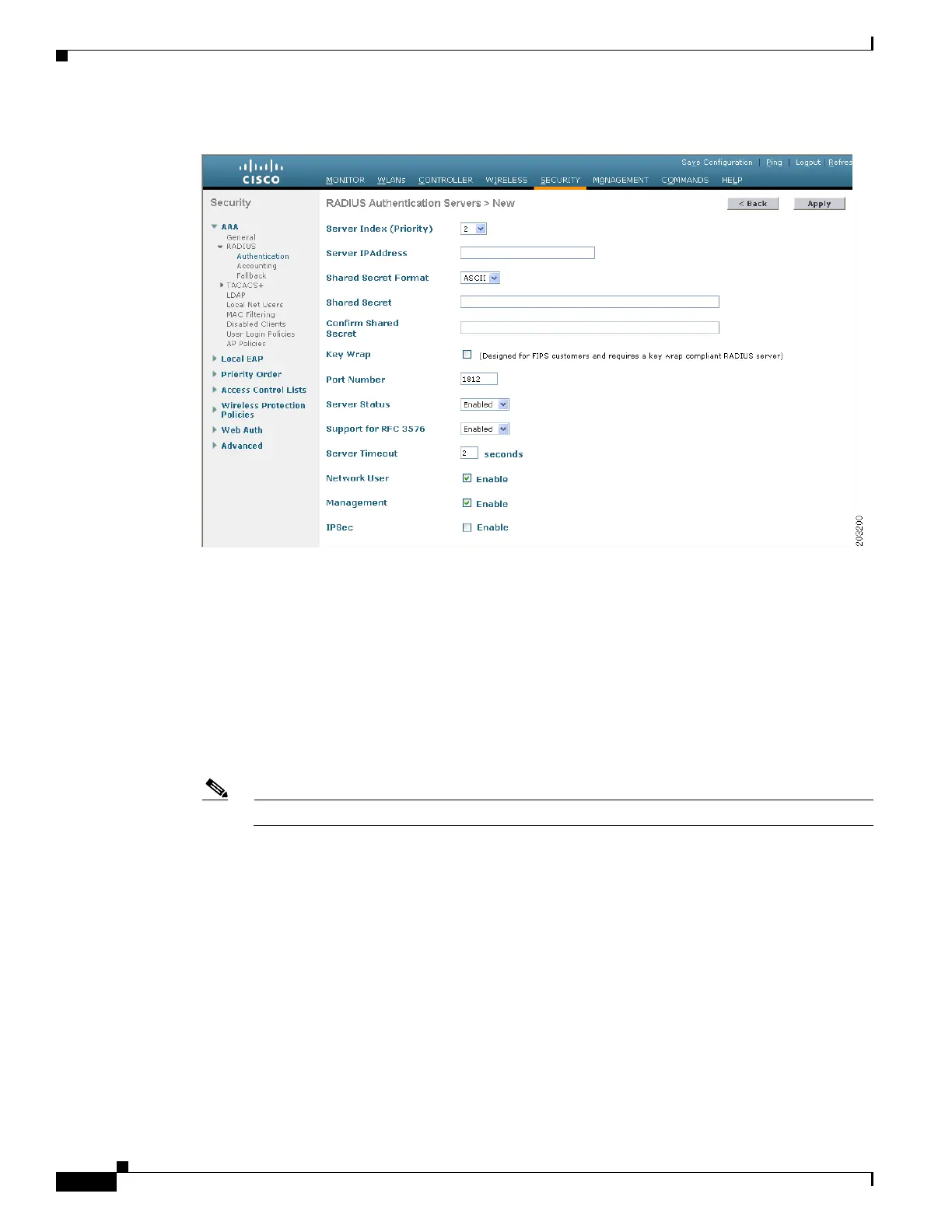Note The shared secret key must be the same on both the server and the controller.