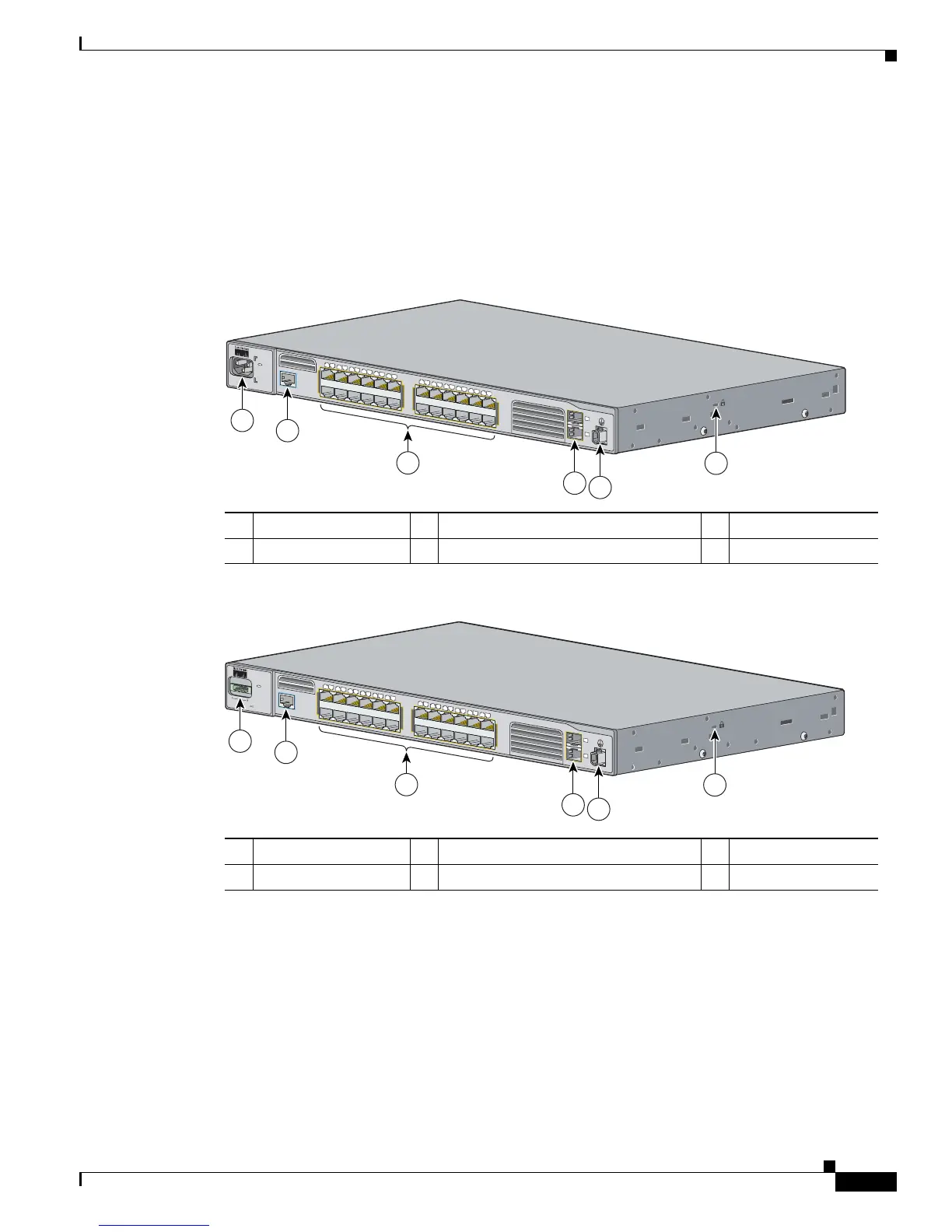 2 Console port 4 Gigabit Ethernet SFP module ports 6 Cable lock