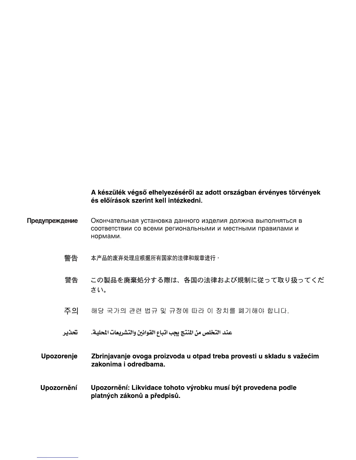 Endelig kassering av dette produktet skal være i henhold til alle relevante