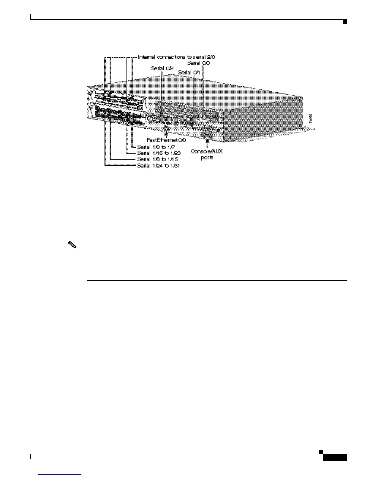 • A 32-port asynchronous network module in slot1 (containing interfaces serial 1/0 through serial
