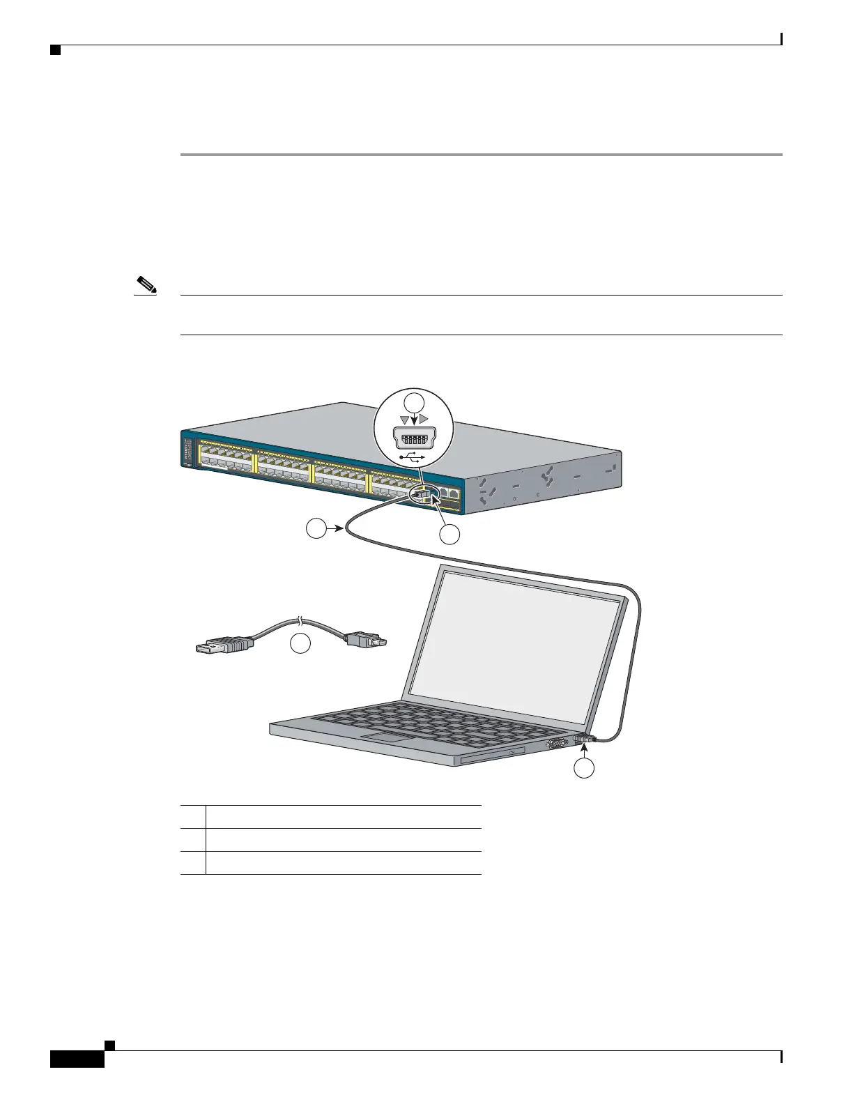 Note If you do not want to use the switch USB console port, you can use an RJ-45-to-DB-9 adapter cable to