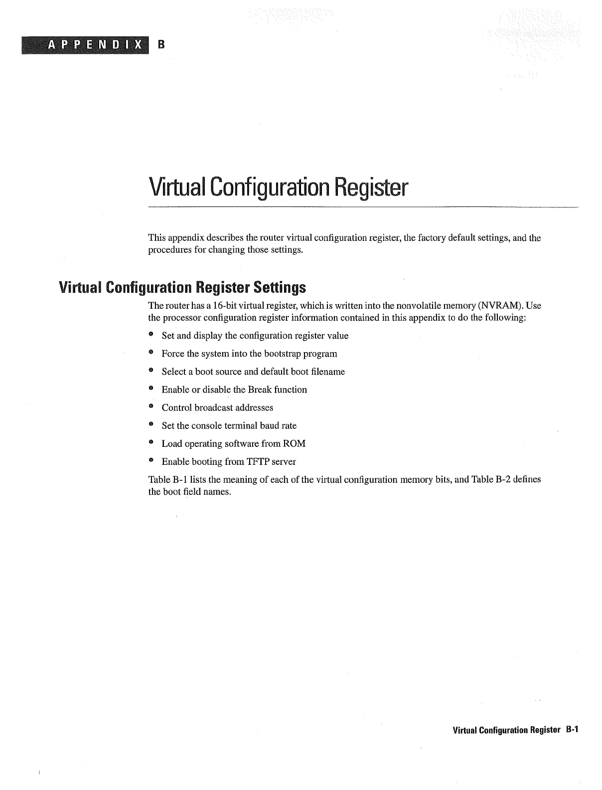 Cisco 3000 Series - Appendix B Virtual Configuration Register; Virtual Configuration Register Management