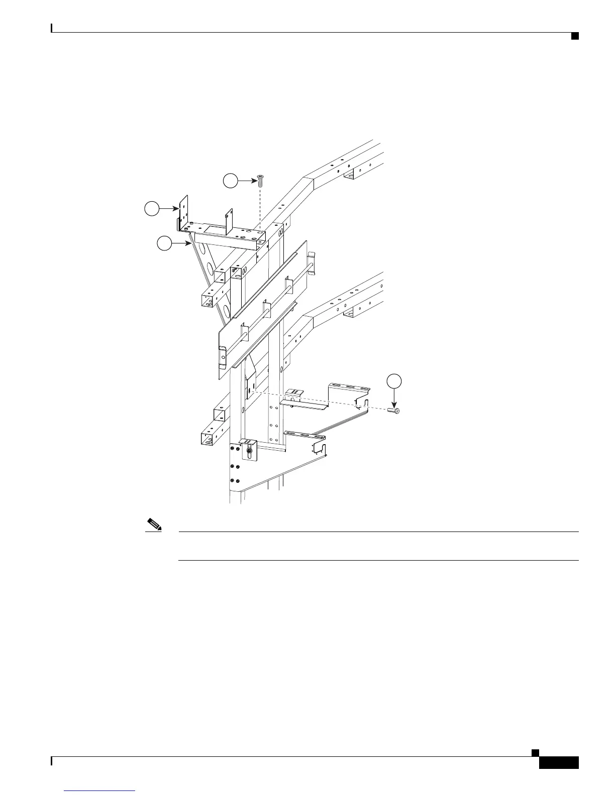 Step 2 Attach the left and right outer Support brackets (from Figure 4-1) to the horizontal bar on the left and