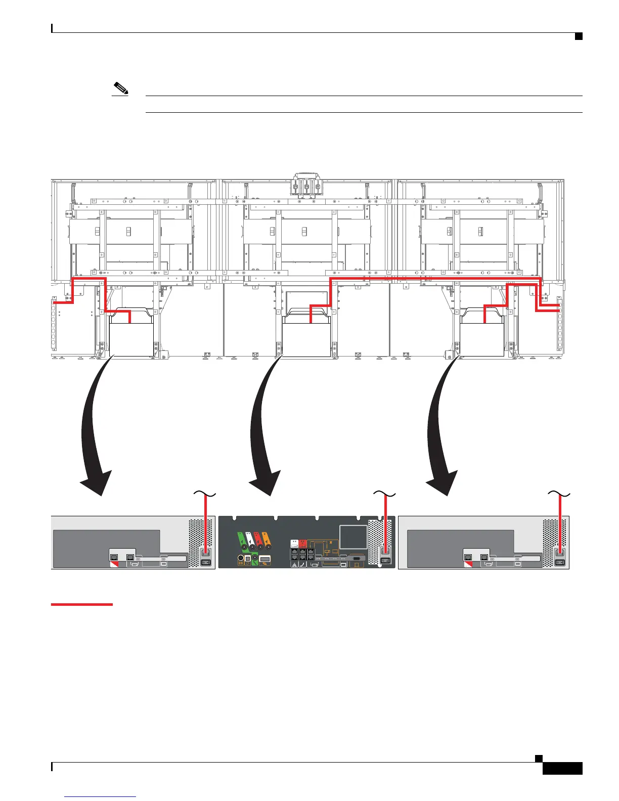 Note Figure 9-15 displays the rear view of the Cisco TelePresence System 3200. Left and right are reversed.