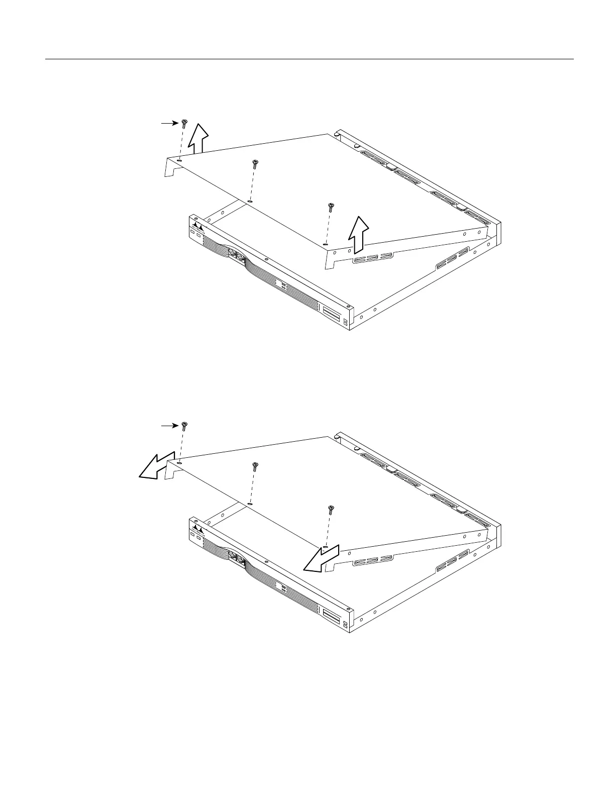 Pull the cover toward you until the metal tabs on the rear edge separate from the chassis