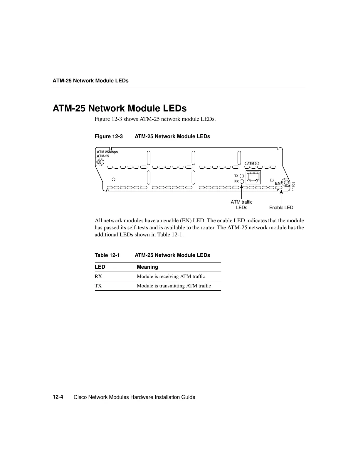 Table 12-1 ATM-25 Network Module LEDs