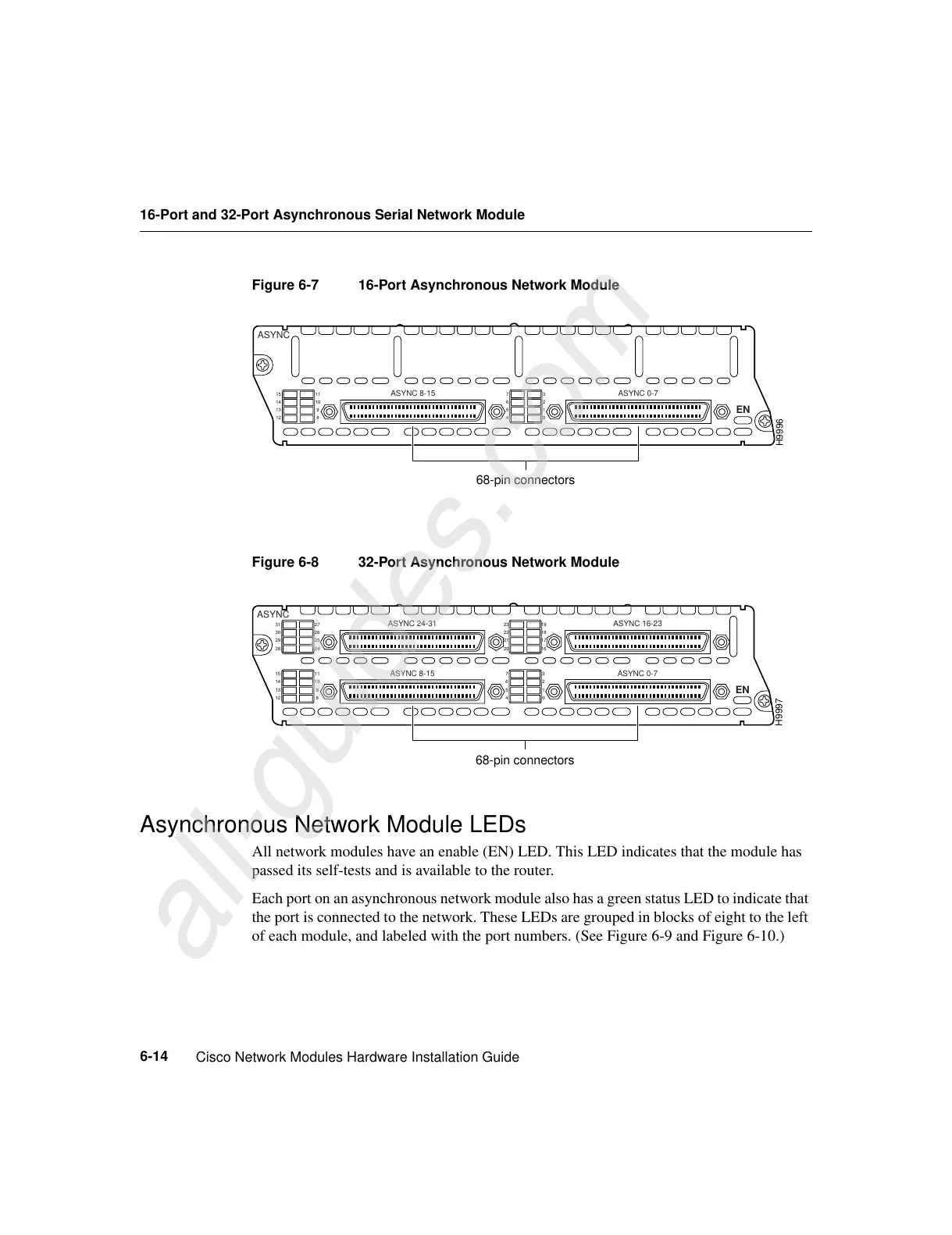 Each port on an asynchronous network module also has a green status LED to indicate that