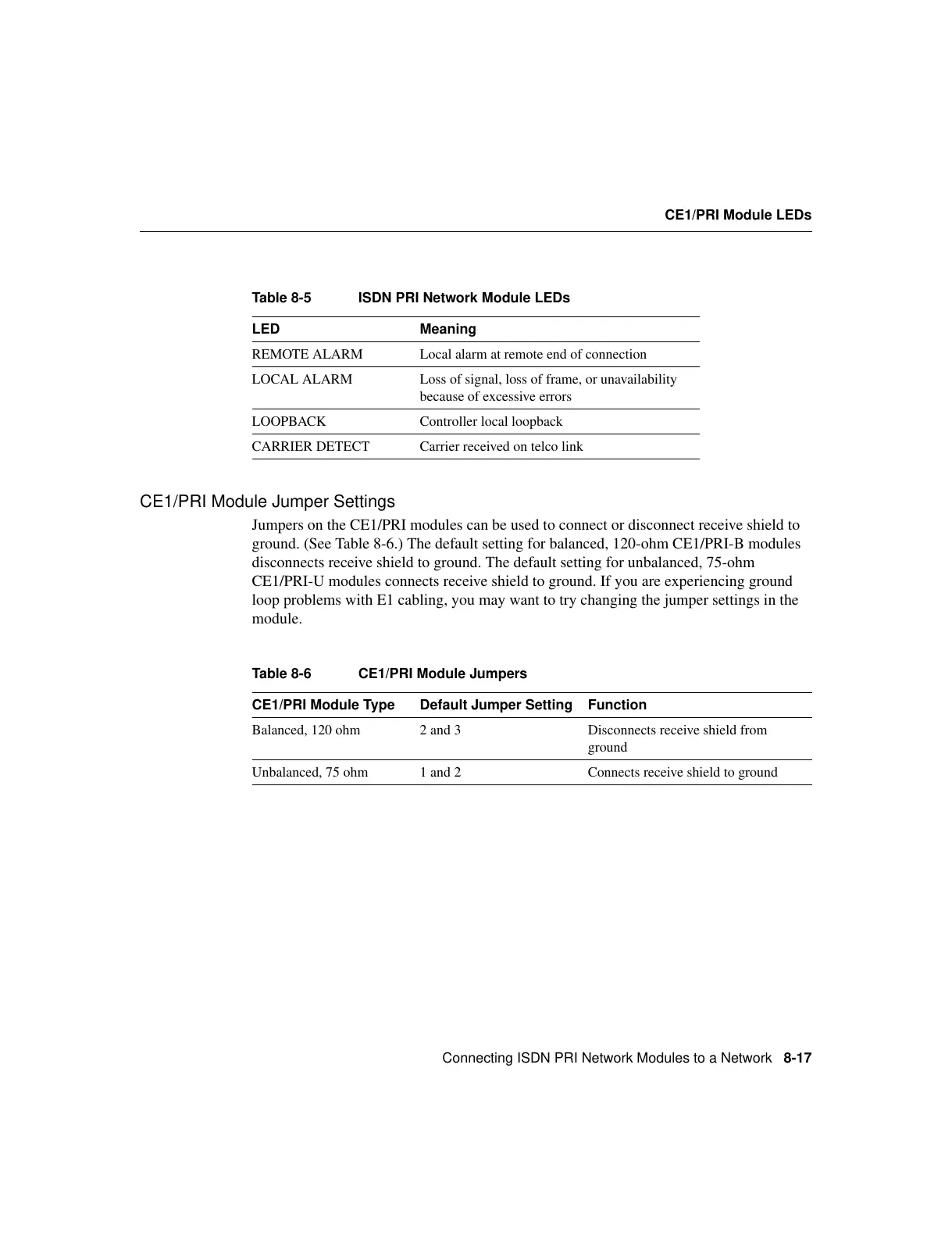 ground. (See Table 8-6.) The default setting for balanced, 120-ohm CE1/PRI-B modules