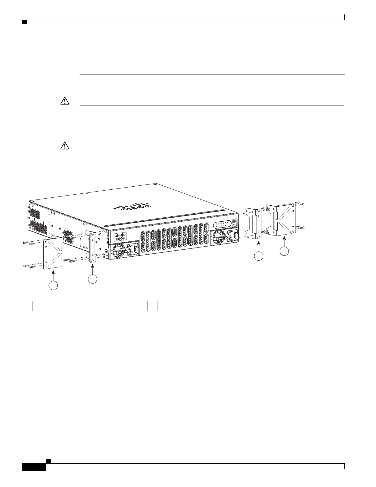 Step 1 Attach the mounting brackets to the router chassis as shown in Figure 3-2 through Figure 3-5, using the
