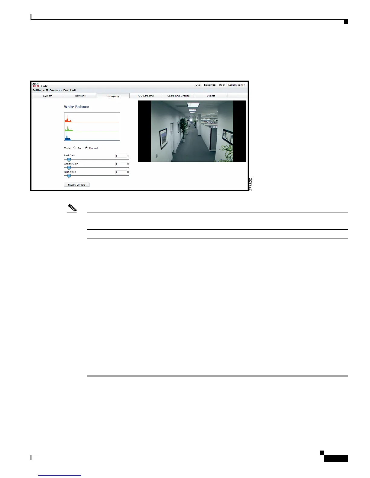 Step 5 If required, click the Factory Defaults button to reset the white balance to the factory default setting.