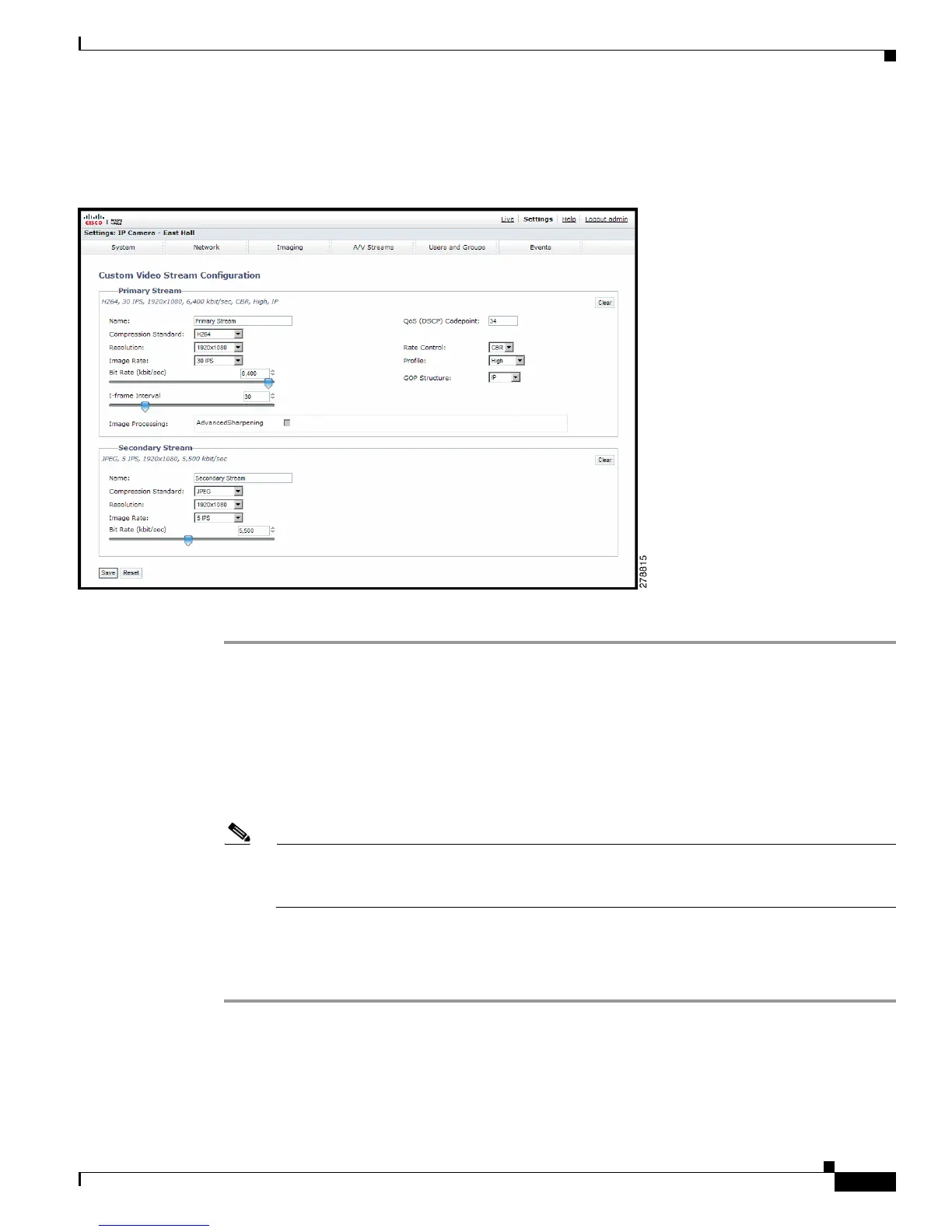 Step 6 Repeat steps 3 through 5 for the Secondary stream.