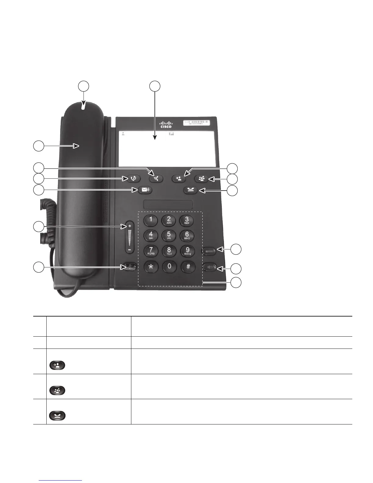 Handset with light strip Lights up to indicate a ringing call (flashing red) or a new voice