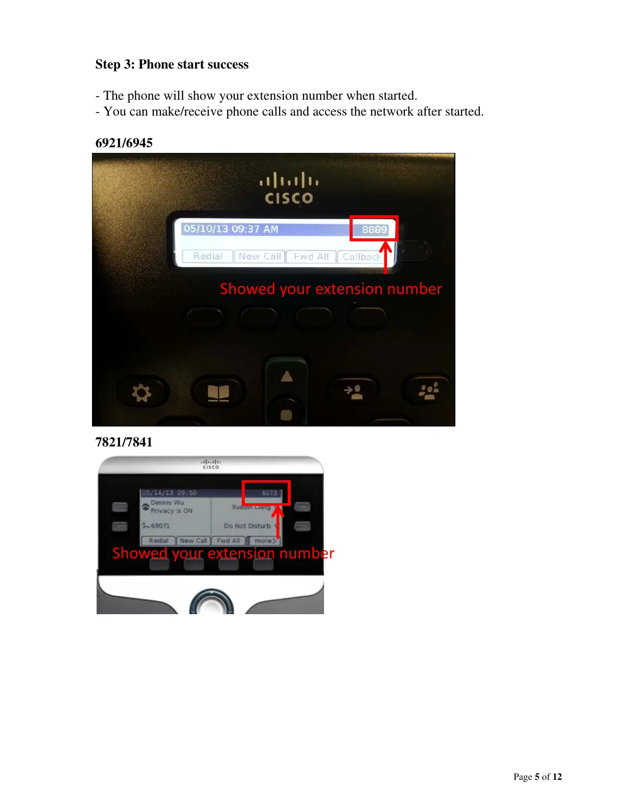 - The phone will show your extension number when started.