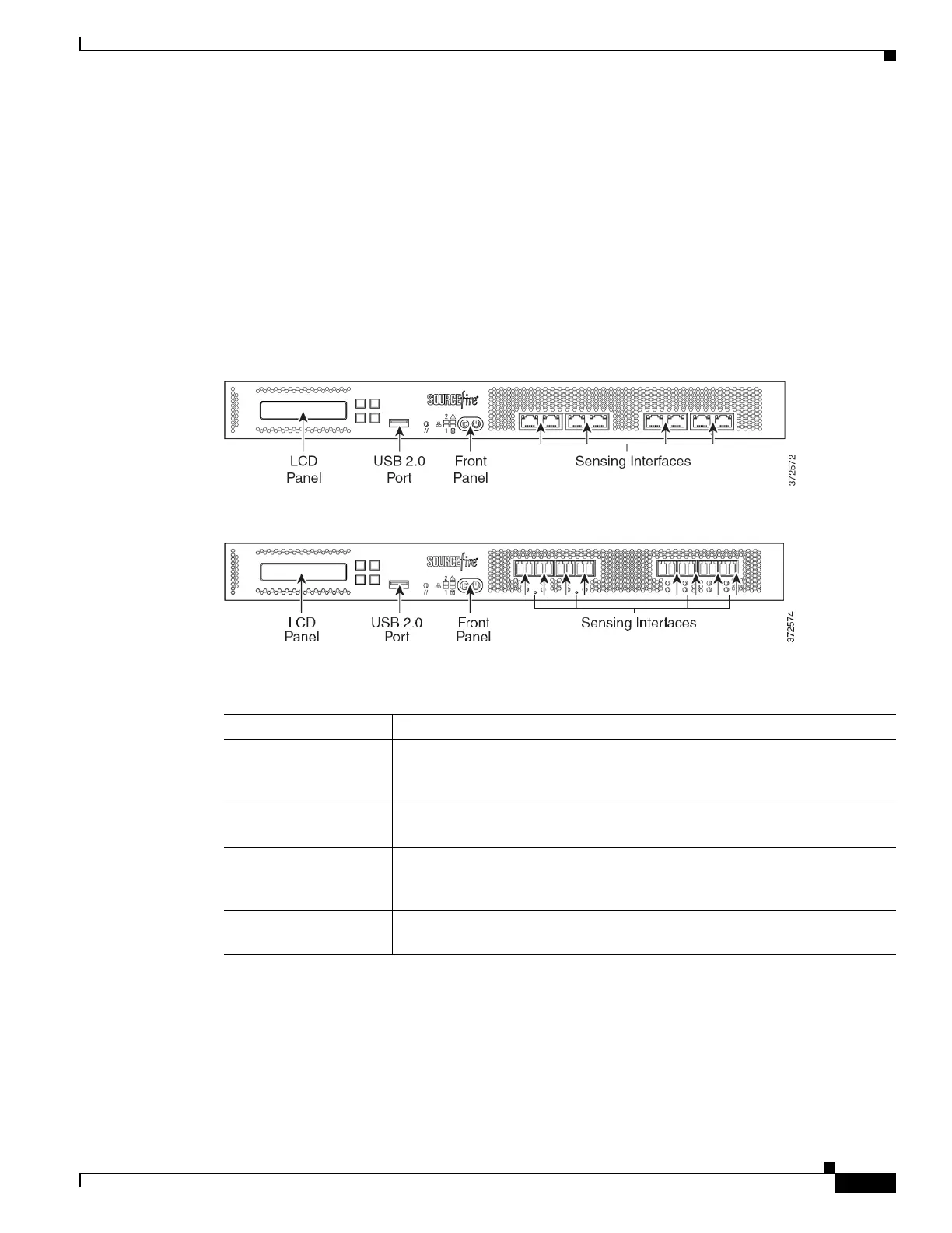 The front of the chassis contains the LCD panel, USB port, front panel, and either copper or fiber sensing