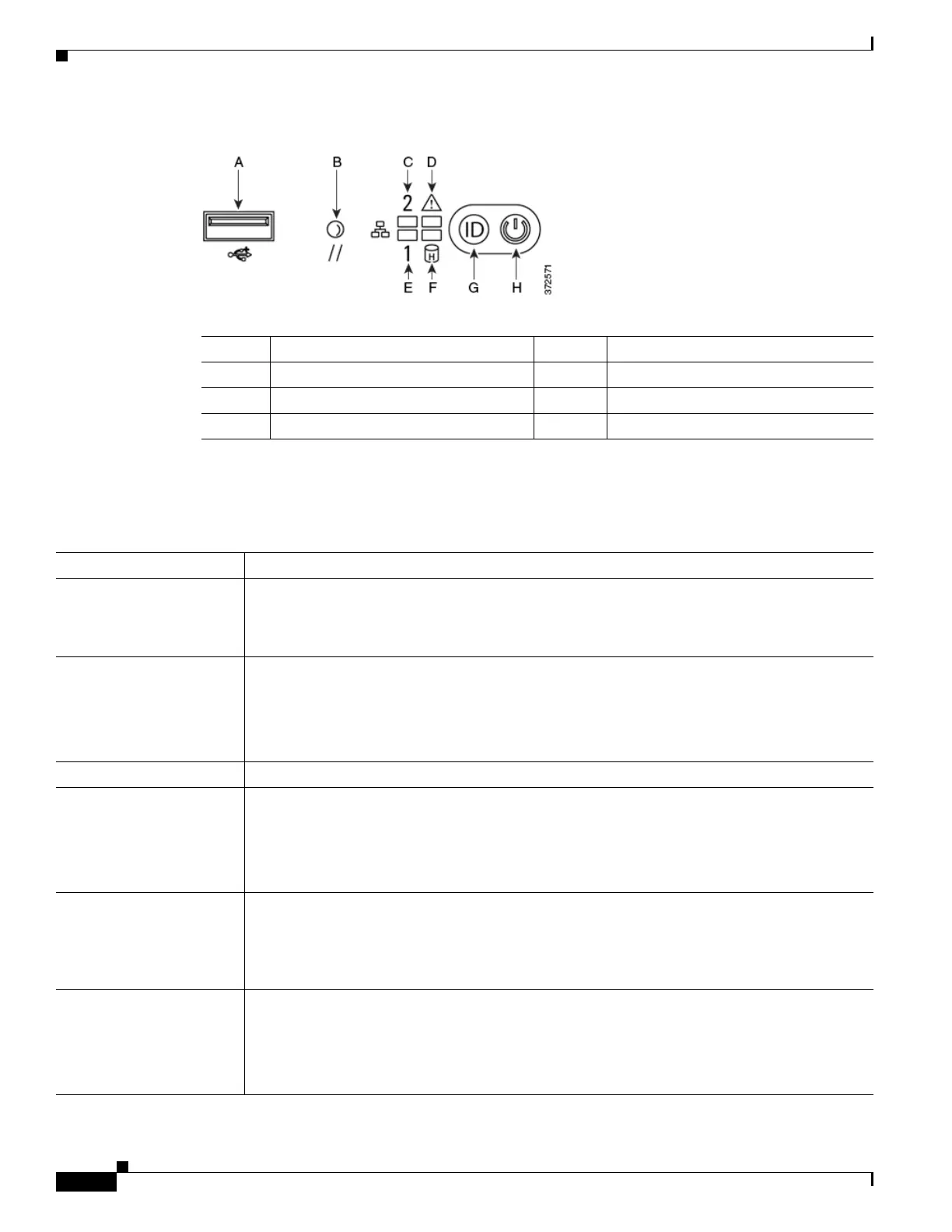 table describes the LEDs on the front panel.