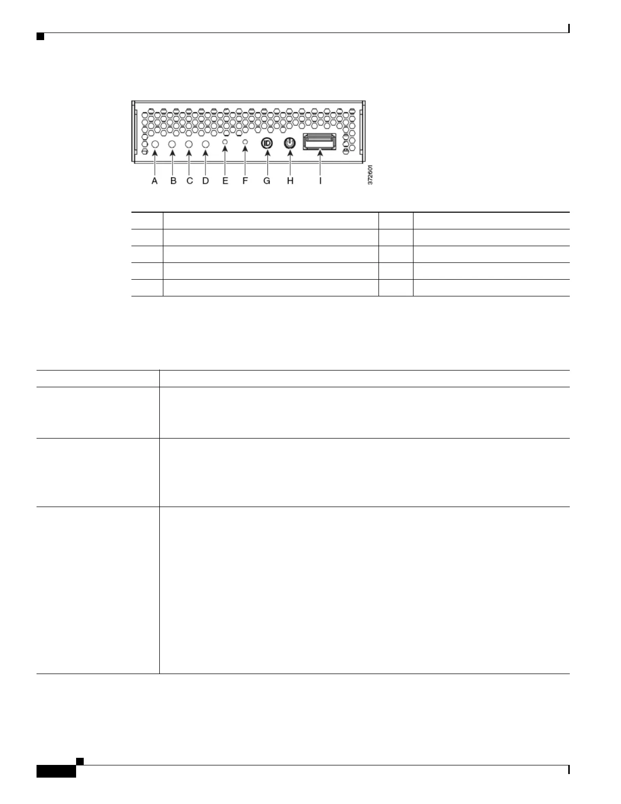 table describes the LEDs on the front panel