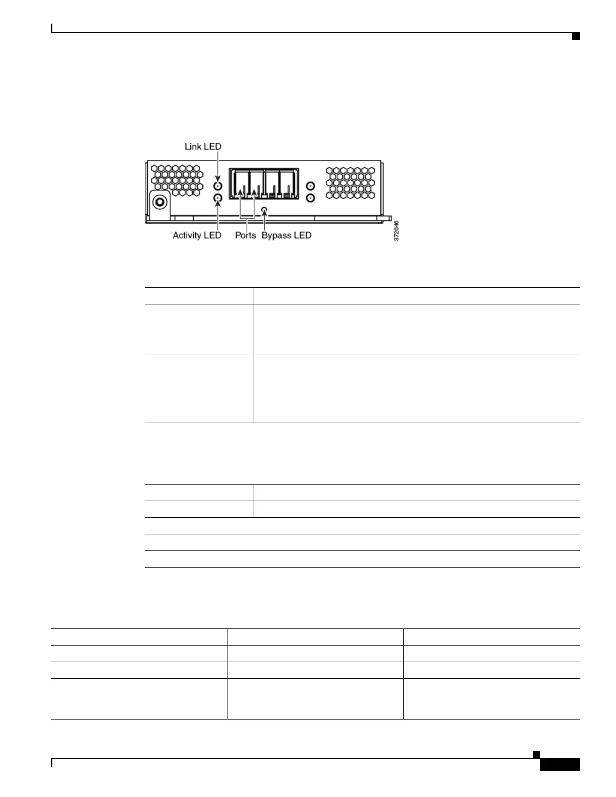 Use the following tables to understand the bypass LEDs on the fiber interfaces.