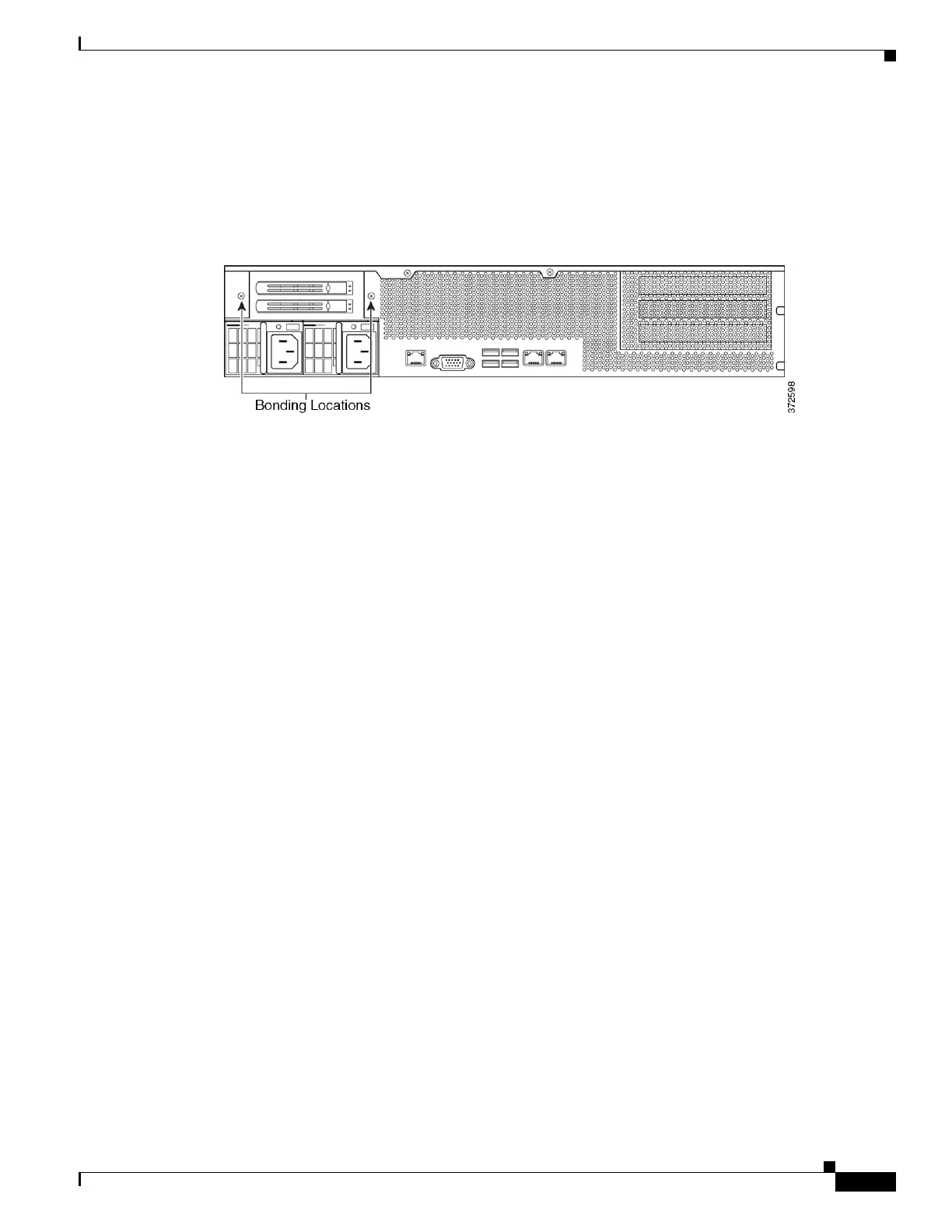 The following illustration indicates the bonding locations on the 2U chassis.