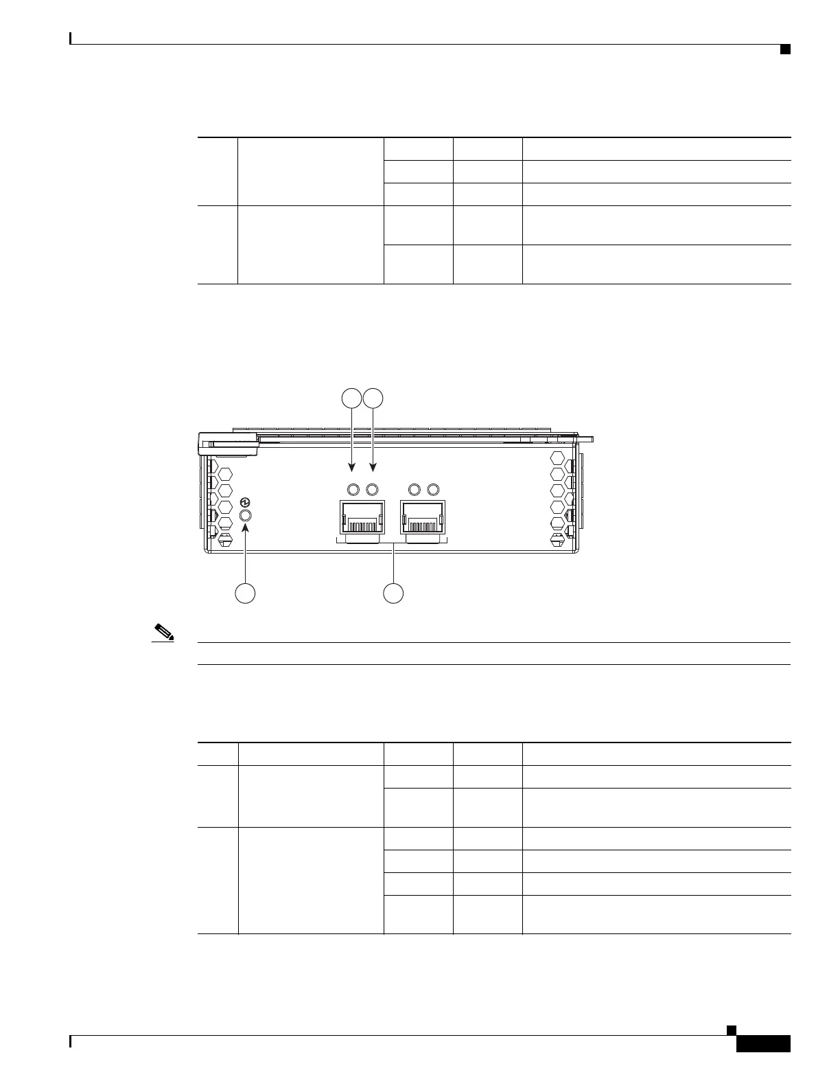 Figure 5-9 2-Port Fiber Optic 10 Gigabit Ethernet SFP+ Interface Module—Port Numbering and LEDs
