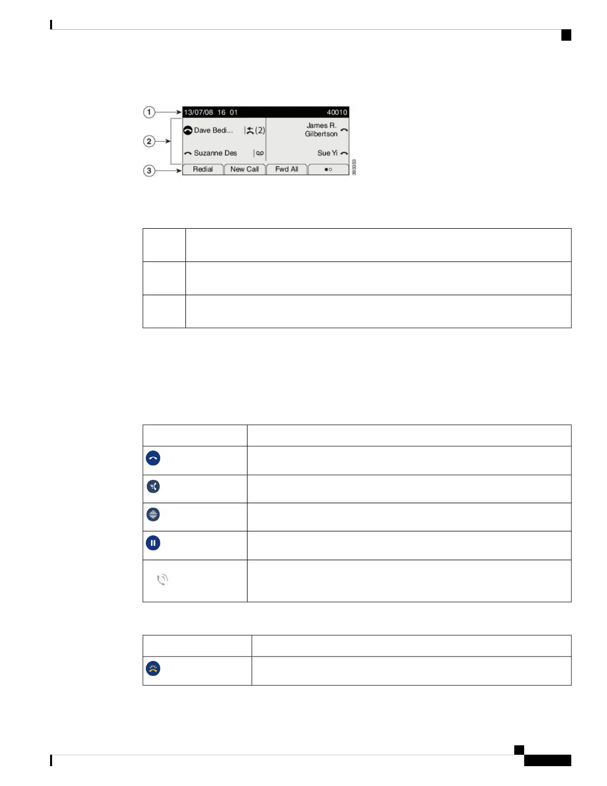 The following table describes the Cisco IP Phone screen components.