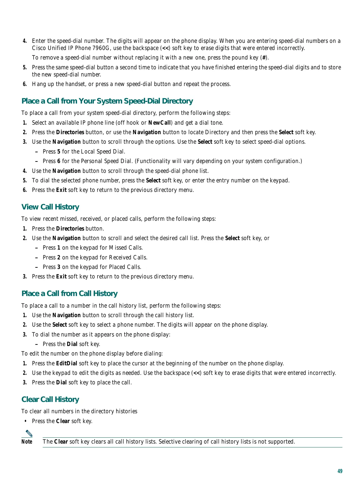 Note The Clear soft key clears all call history lists. Selective clearing of call history lists is not supported.