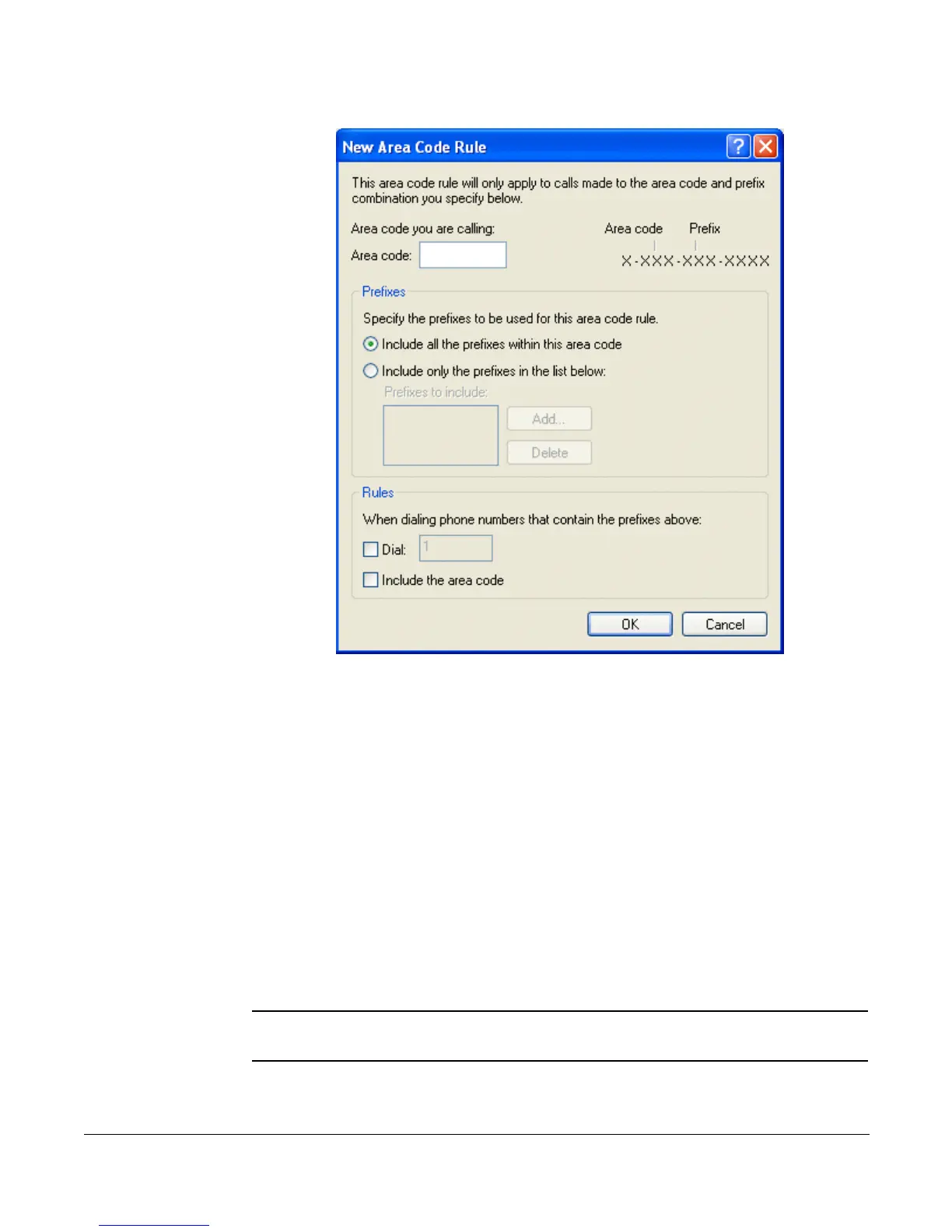 • “Include all the prefixes within this area code” is selected.