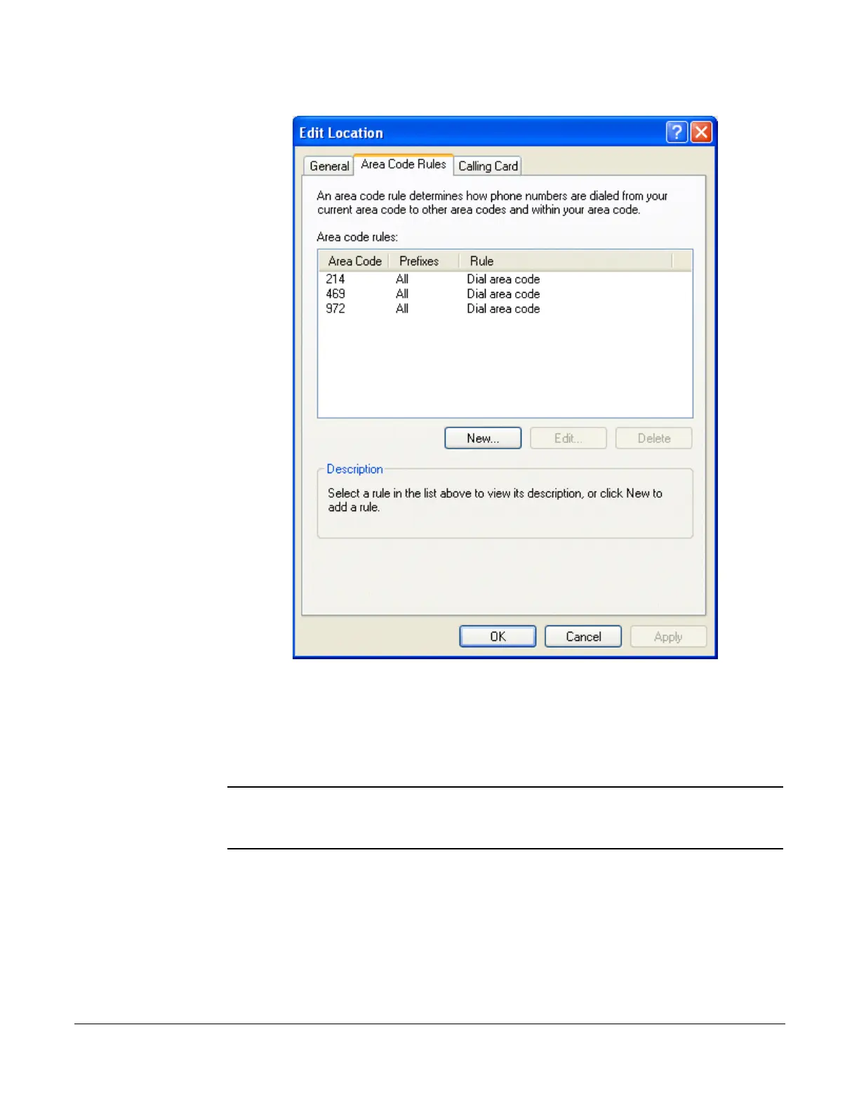 - by filling in the necessary information in the New/Edit Area Code Rule dialog