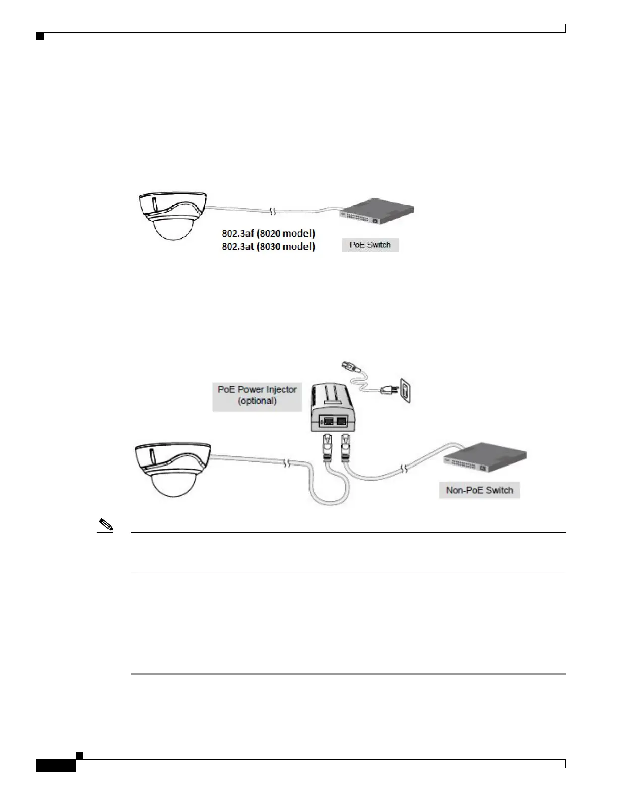 Note • The camera is only to be connected to PoE networks without routing to outside plants.