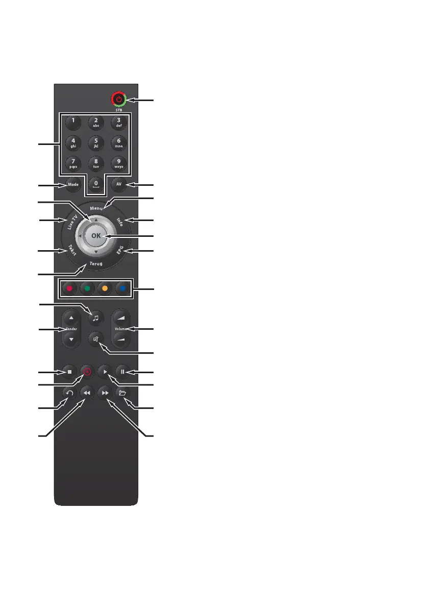 Press the keys on the remote control to navigate through the menus, to access programmes, and to record