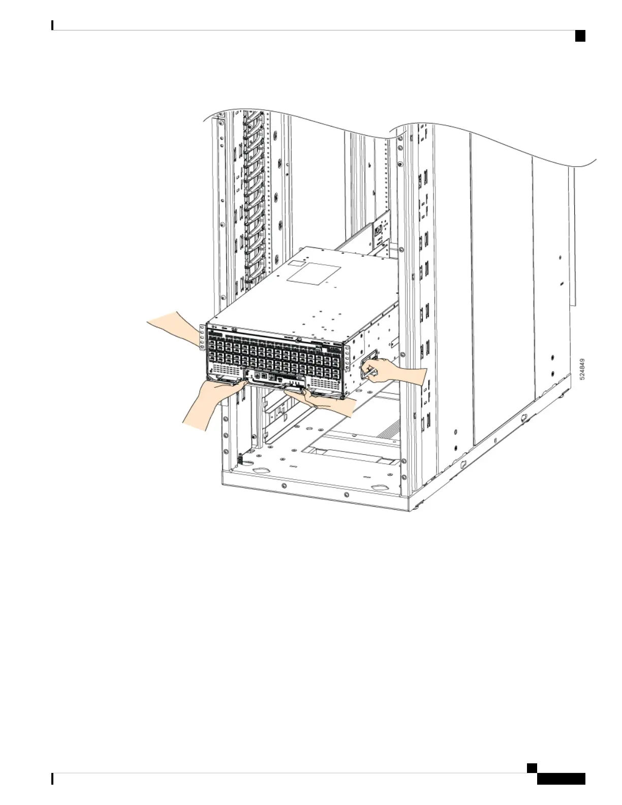 Step 3 Align the two rack-mount guides on either side of the switch with the guide rails installed in the rack. Slide