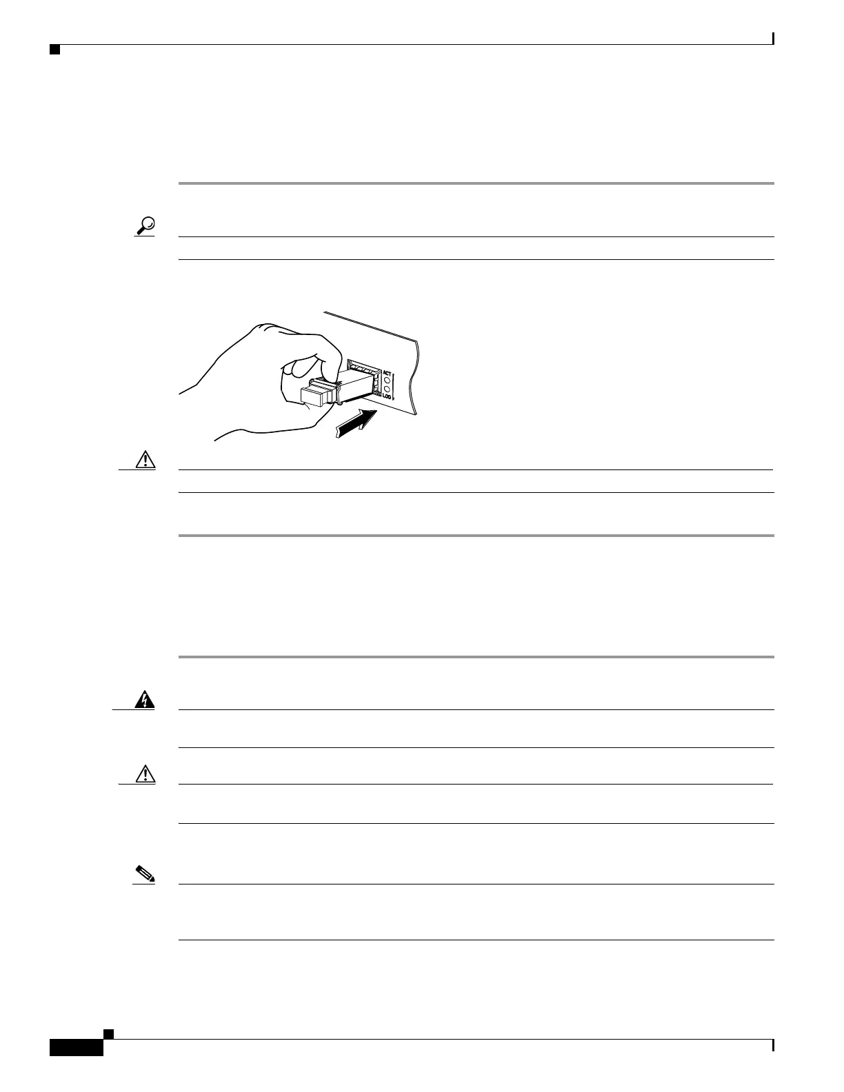 Tip If the SFP uses a bale-clasp latch (see Figure 3-33), the handle should be on top of the SFP module.