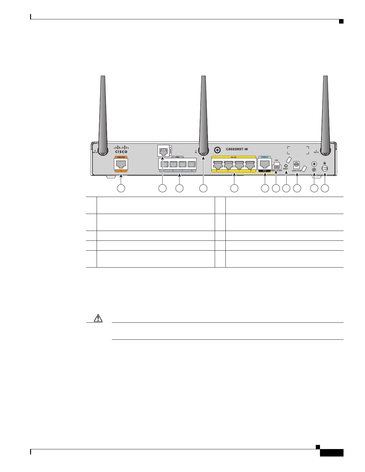 Caution The primary WAN port on all 888E models is designed for an RJ-45 connector only. Damage