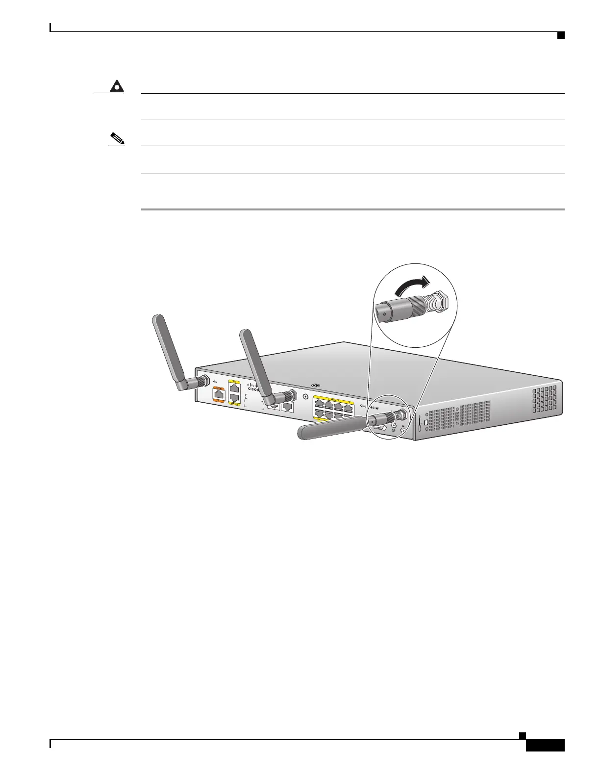 Note Before you install the Cisco 890 series wireless router on a table, wall, or rack, connect the antennas to